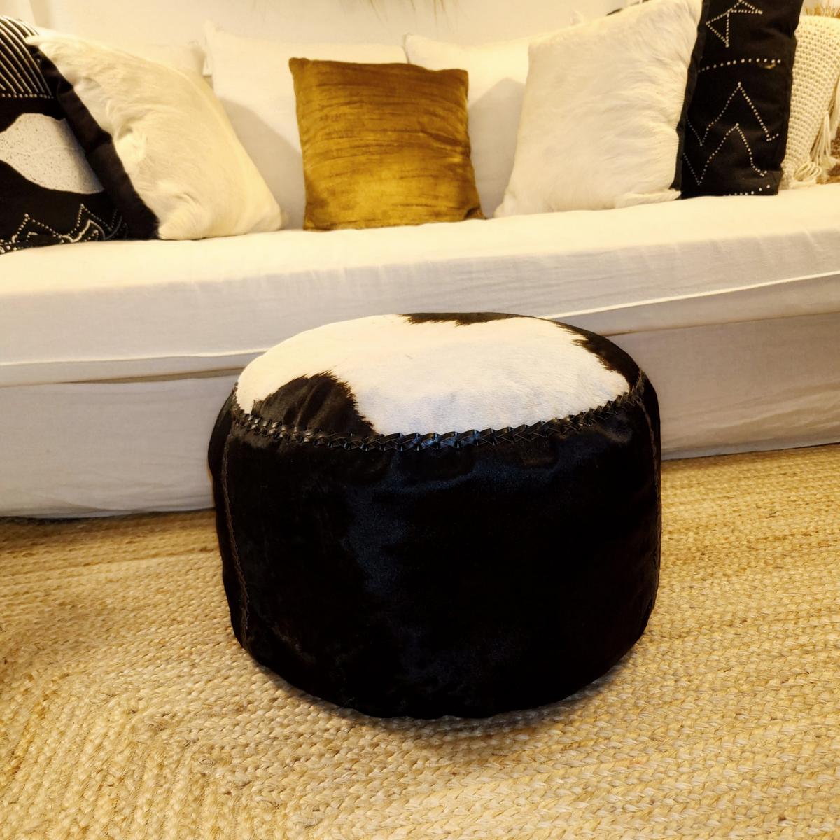Pouf en Peau de Vache – Élégance Naturelle et Confort Authentique